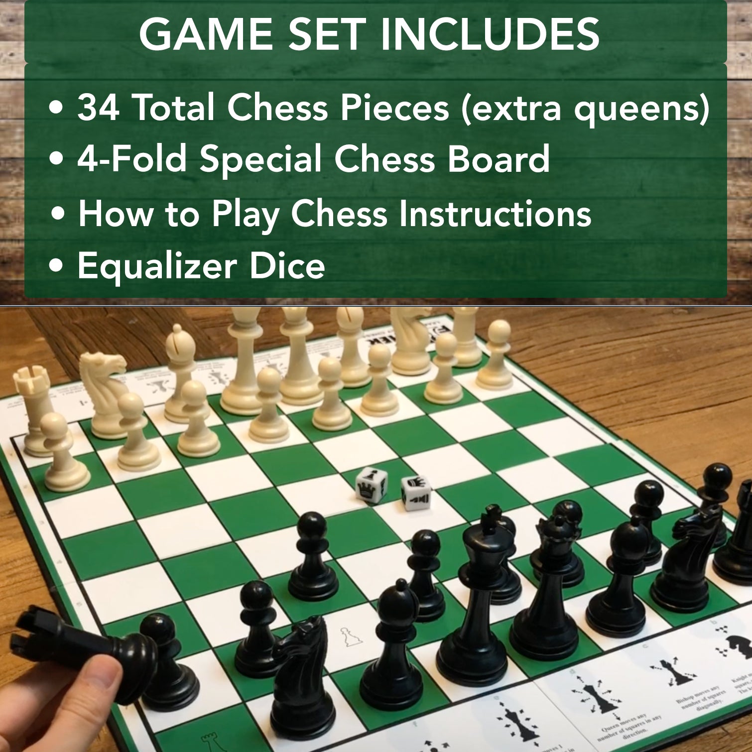 - Regulation Chess Pieces: The set includes 34 plastic Staunton chess pieces that meet USCF and FIDE requirements for tournament play. The king measures 3.75 in. tall, and 2 extra queens are included.