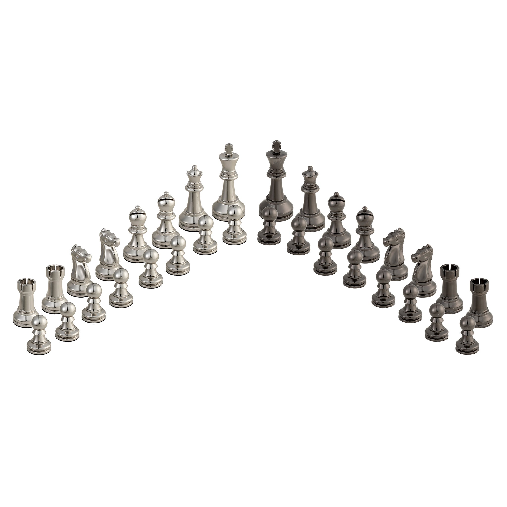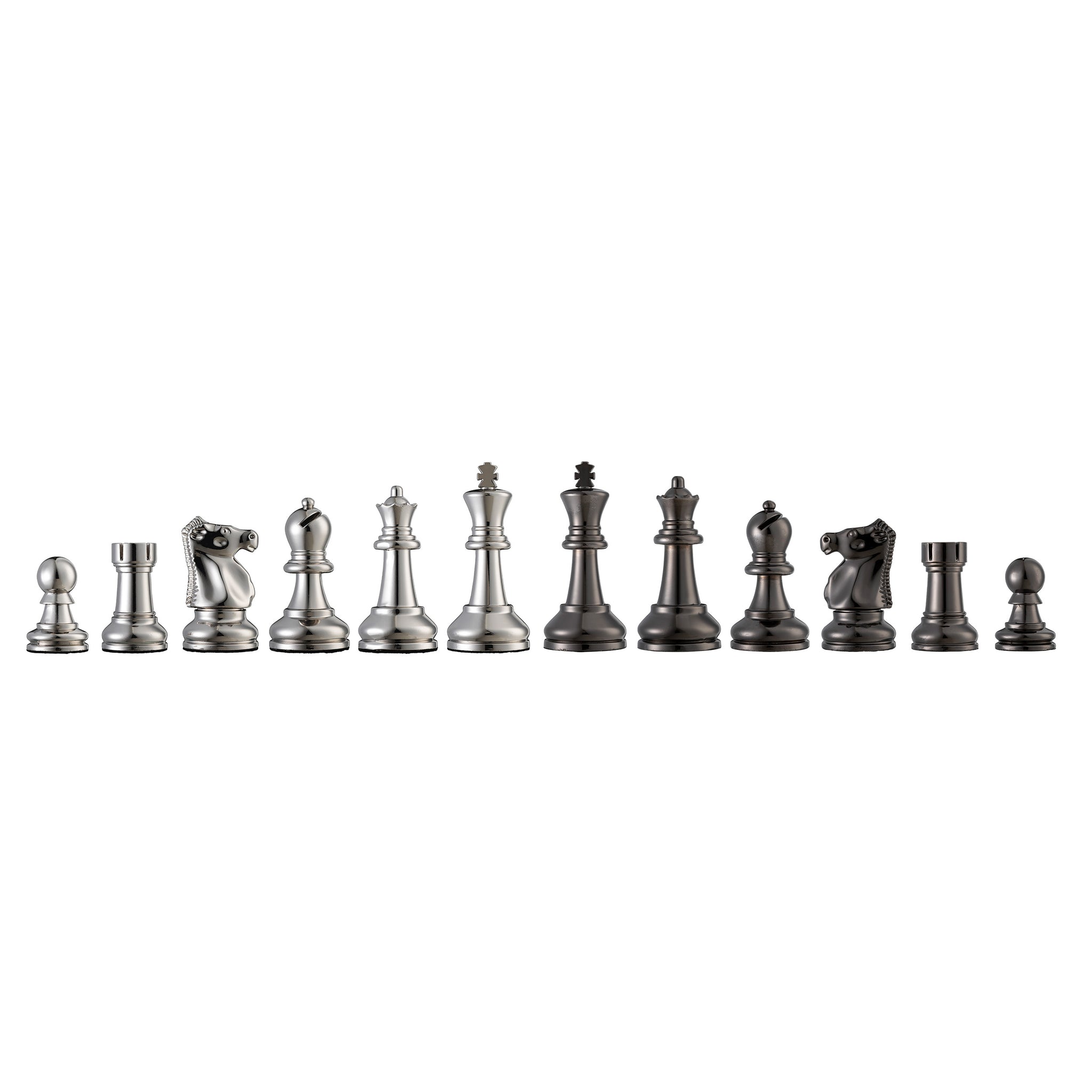 124021- King measures 3.75 inches tall, pieces are silver and black plated metal