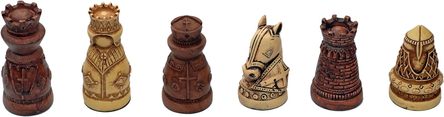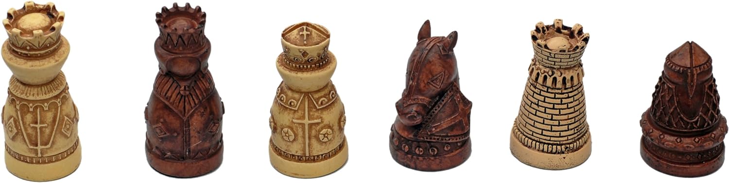 Relive the chivalry of Medieval times with this gorgeous chess & checkers game set with storage drawers! Richard the Lionheart, the great Crusades, and the legend of Excalibur are brought to life with the vibrantly hand painted chessmen. Play out the epic battles, and grandeur of the Middle Ages across the beautiful game board. This is a timeless combination game set that is to be enjoyed for generations. Medieval theme chess pieces are made of polystone.